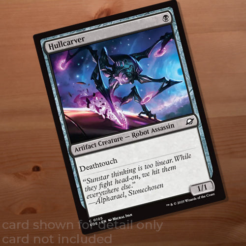 This was made using Hullcarver, card #105 in the Edge of Eternities expansion. It is black, with B for its casting cost.
