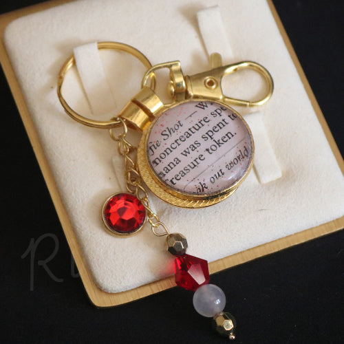 Show your love for Magic the Gathering with this keyring. You can hang it with your keys or use it as a bag charm to adorn your card bag as you head out to Friday Night Magic. It is a simple cabochon keychain made from an actual card. Each keychain is made by hand, featuring dangling rhinestones and beads.
